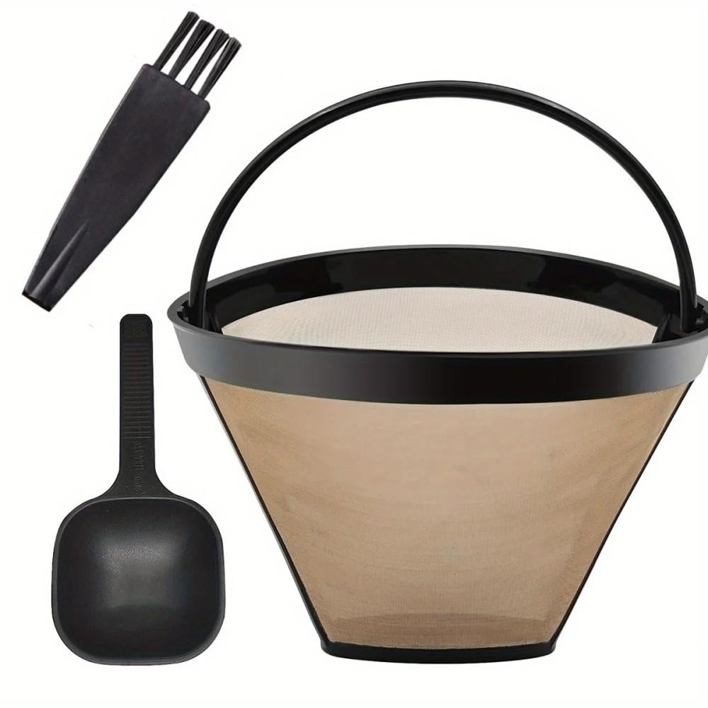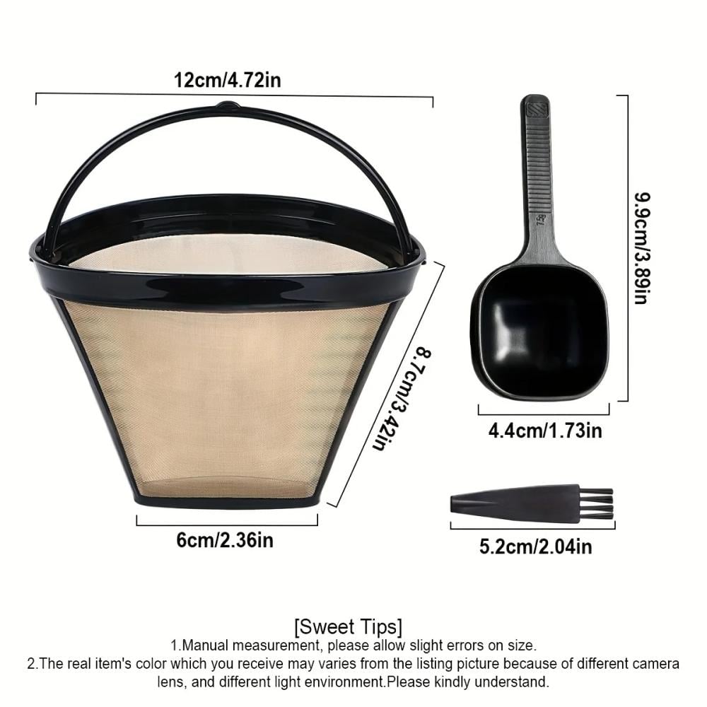 مميزات فلاتر قهوه مقطره شبكي قابل لإعادة الاستخدام مع ملعقة قياس وفرشاة تنظيف