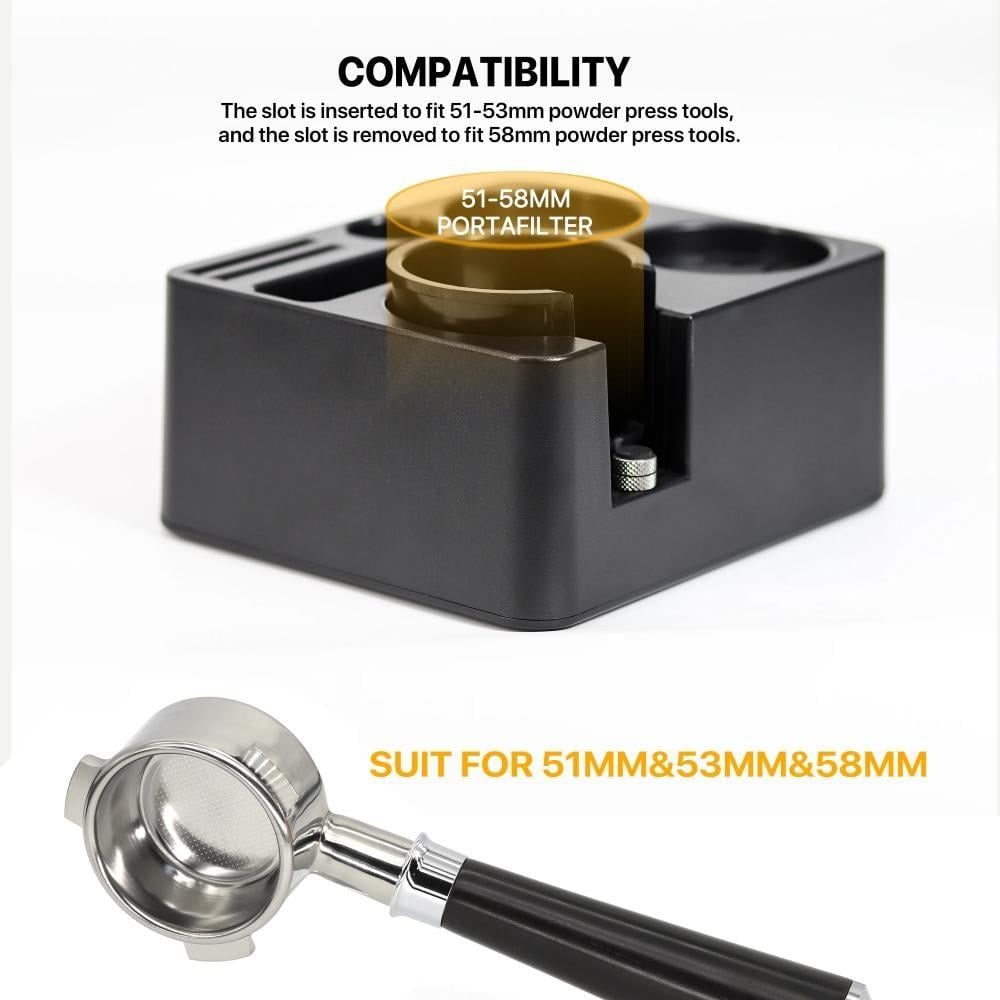 حامل Portafilter لتنظيم ادوات اسبريسو ، مع قاعدة دعم مخصصة لملحقات اسبريسو من ديلونجي وبريفيل، يوفر لك ترتيبا مثاليا وسهولة في الوصول، مما يسهل تحضير القهوة بدقة واحترافية.